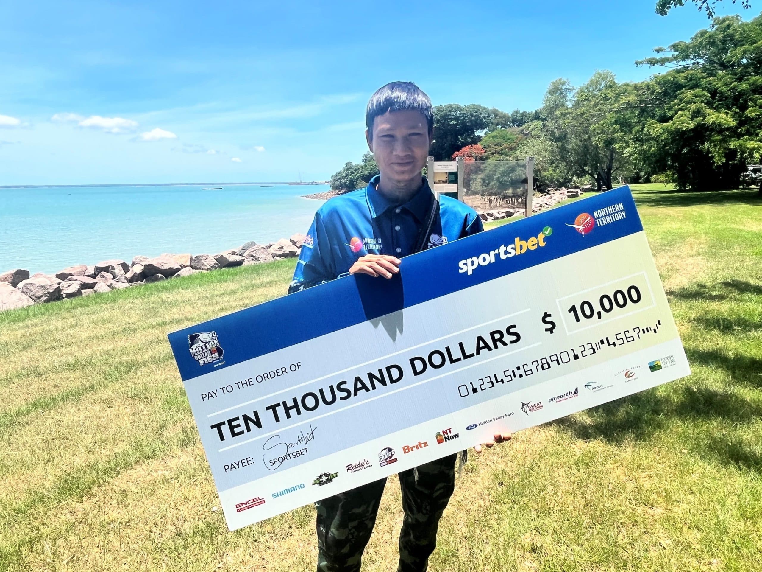Lucky fisho Leon Danicic has found himself $10,000 better off after wetting a line at the Vic River while enjoying a road trip from the Northern Territory to Western Australia.